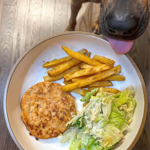 Salmon Burger, French Fries & Side Salad