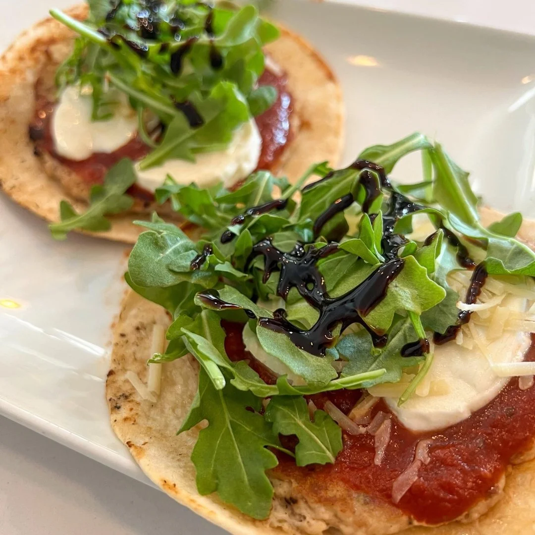Top with arugula, grated Parmesan cheese and balsamic glaze. Enjoy!