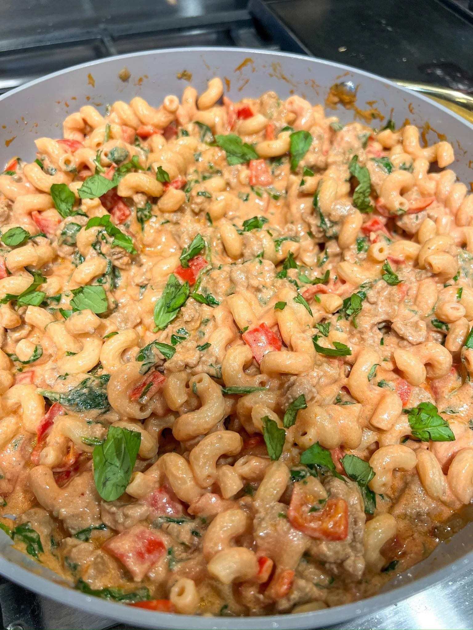 This Creamy Ground Turkey Pasta is so creamy and delicious. Best part is, it comes together in less than 30 minutes.