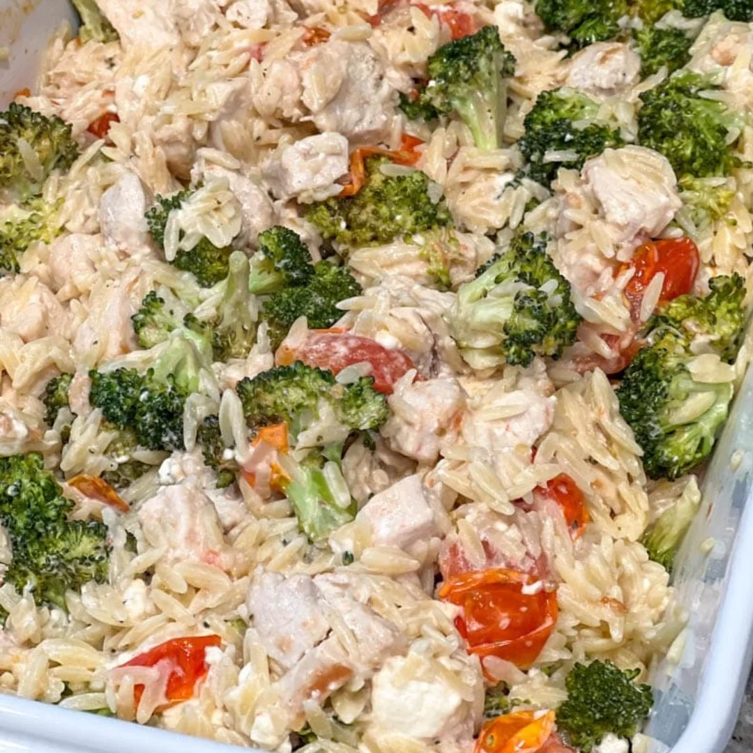 This Feta Orzo Bake is a simple twist on the popular feta pasta bake recipe that went viral. Packed with ultra-creamy orzo and loaded with veggies, it makes for an easy weeknight fuss free meal the entire family will love.
