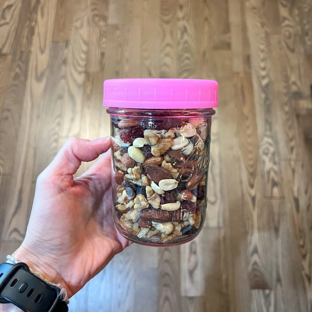 All you have to do is combine your favorite dry ingredients and stash the mix in an airtight container in a cool, dry location, and you're good to go. Keep in mind trail mix can be calorically dense so mind your portion size. Keep the portion size in check. I usually say 1/4-1/3 cup is plenty.