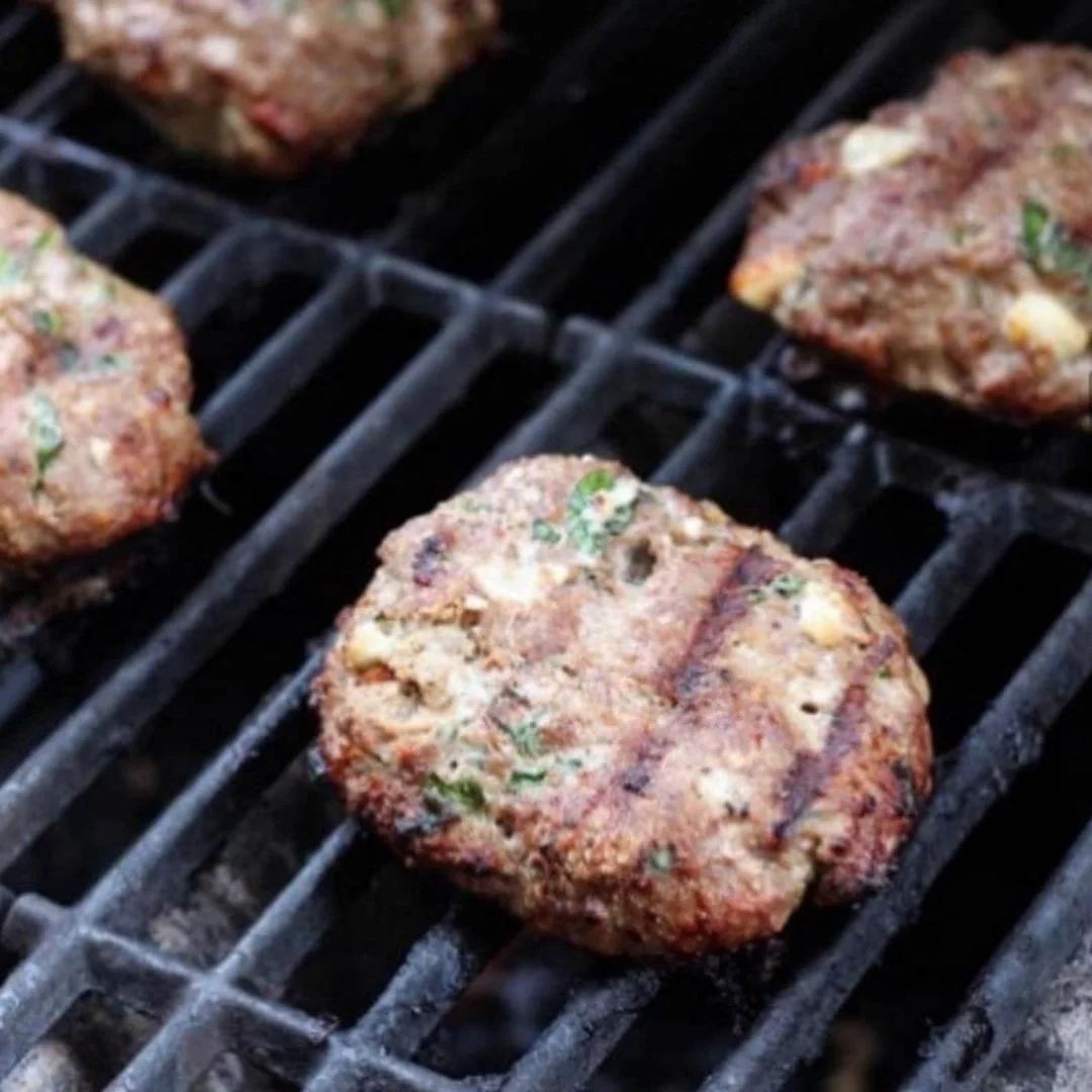 This step is all about how you like your burgers. These burgers can be served on a toasted whole wheat bun, on a bed of lettuce, paired with a veggie or pasta salad. Toppings are also endless and can be personalized, lettuce, Tzatziki, sliced tomatoes, extra feta, sliced cucumbers or sliced onion.