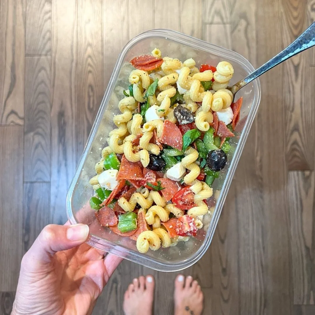 This Pizza Pasta Salad is delicious! Perfect as a meal or side dish. High in protein and fiber.