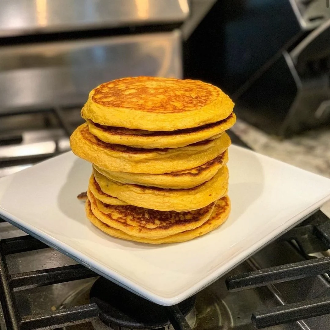 NUTRITION: 2 pancakes Calories: 299 kcal | Fat: 7.5g | Carbohydrates: 37g | Sugar: 11g | Fiber: 5g | Protein: 21g